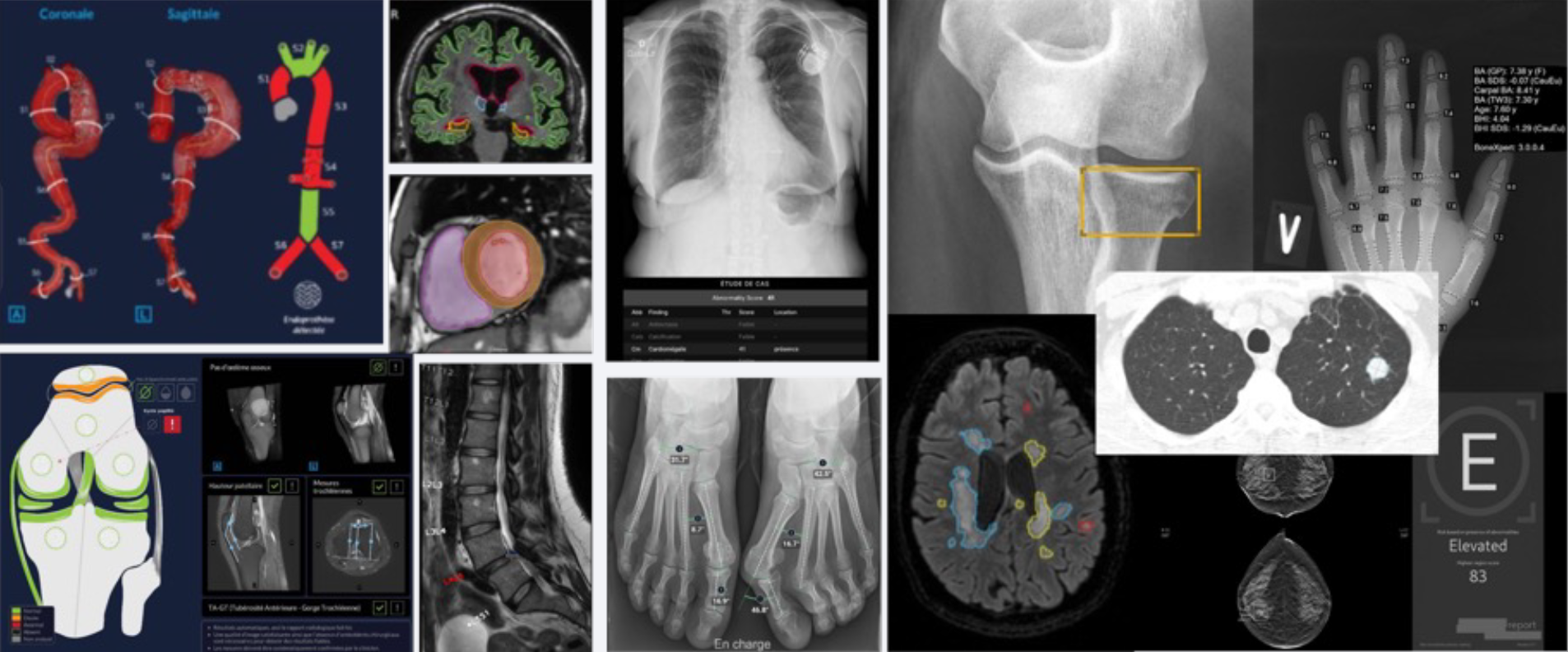 - Traumatologie/orthopédie : détection de fractures et mesures osseuses en quelques secondes, avec jusqu’à -60% de délai de compte rendu (Bonview)