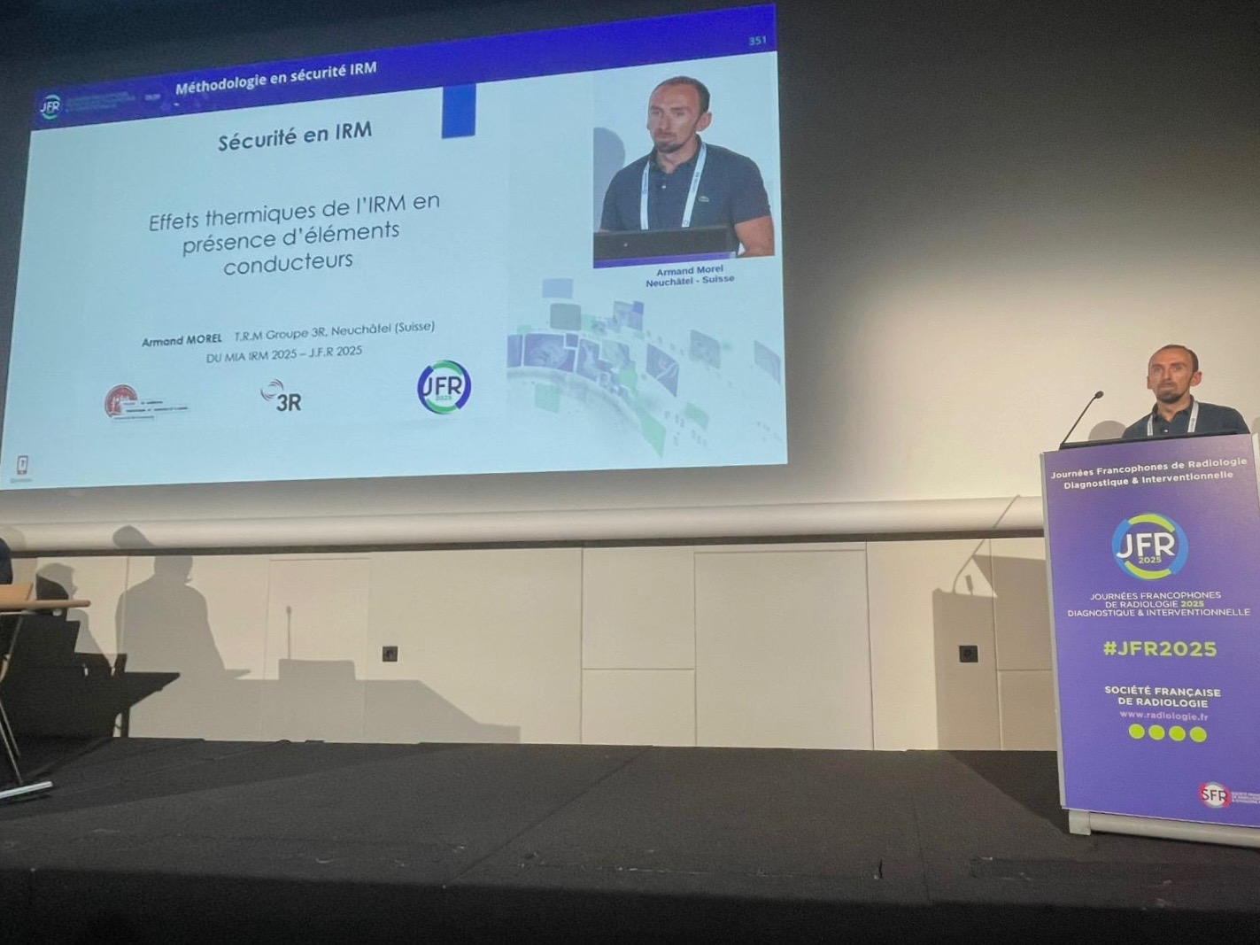 Son mémoire, intitulé « Effets thermiques de l’IRM en présence d’éléments conducteurs », aborde une problématique essentielle pour la sécurité des patients et la qualité des soins. Sélectionné pour une présentation aux Journées Francophones de Radiologie (JFR), son travail a suscité l’intérêt de plusieurs équipes de recherche et d’enseignement, dont celle du CHU de Poitiers (IRM 7 Teslas) et de l’école de Besançon.